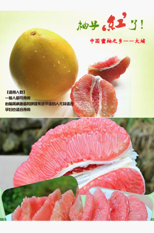 1、外在感官特征:大埔蜜柚早熟,一般在中秋节前后上市,果大皮薄,平均单果重1250—1500g,果实呈梨形或倒卵形,果色表皮淡黄、光滑,商品性好。果肉多汁化渣,酸甜适中,有香蜜味,种子少或无。2、内在品质指标:大埔蜜柚营养价值高,经检测,果汁中含总糖8.5—12.3%,总酸每千克3.2—5.35克,维生素C每100克含48.93—51.98毫克,可溶性固形物10.7—13.9%。3、安全要求:大埔蜜柚产地环境要符合无公害食品林果类产品产地环境条件的要求,产品质量符合无公害农产品标准要求。